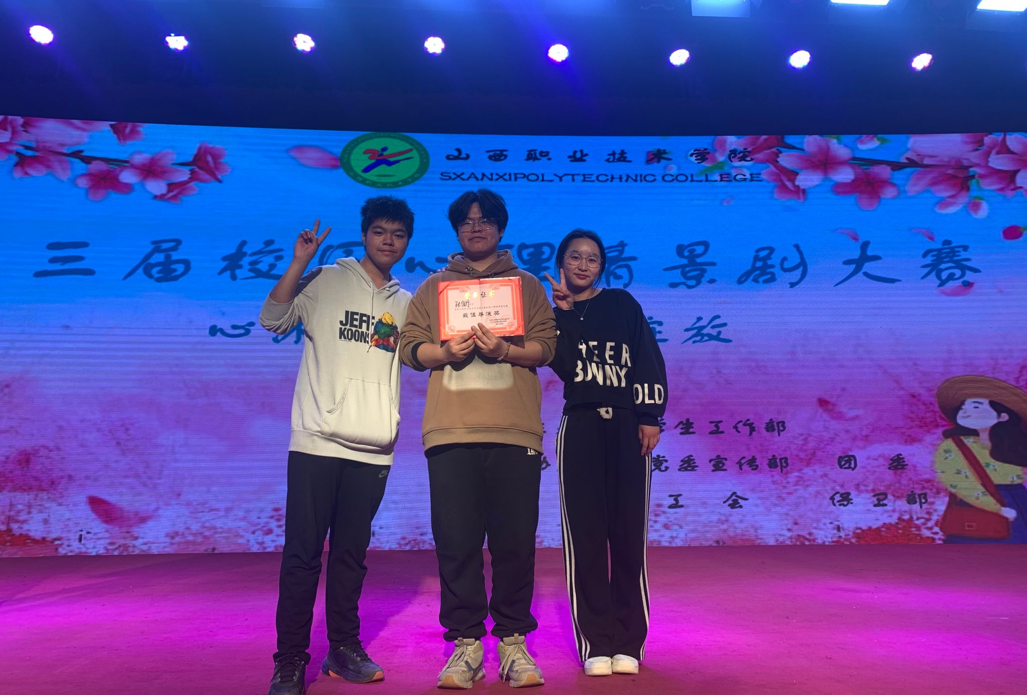 4月25日,万象城awc官网登录入口第三届校园心理情景剧大赛在长风校区举办。工商管理系选送的作品《破茧》获一等奖,辅导员游静荣获优秀指导教师,电商A2101班学生张伯行荣获最佳导演奖,网营A2202班学生梁亿会获最佳主角奖。