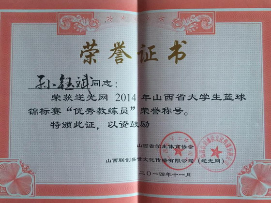 2014年12月21日下午,在万象城awc官网登录入口南中环校区举办了“逆光网2014年山西省省城大学生篮球联赛”总结大会,山西省教育厅体卫处任向东处长主持大会。万象城官网在这次比赛中获得了联赛第一名的优异成绩,并荣获了“最佳赛区”的光荣称号,孙钰斌教师获“优秀教练员”。