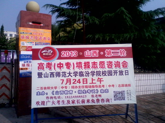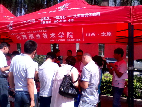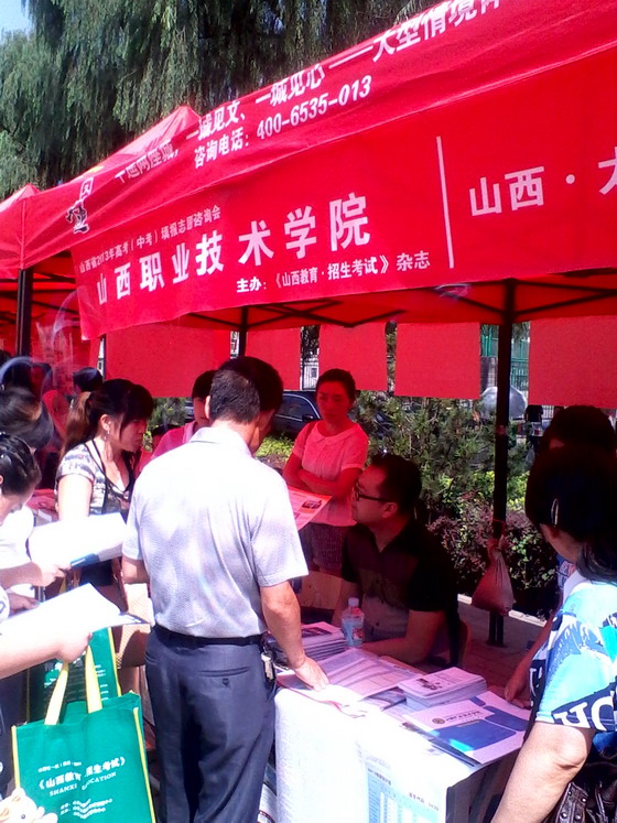 为了使广大考生与家长更全面、直接地了解万象城官网的招生专业、办学优势及特色,我部门吴鹏、逯文鼎两位老师于7月20日至25日参加了“山西省2013年全国普通高校招生咨询会”(第二轮)的太原场、长治场、晋城场、临汾场及运城场五个场次的招生咨询会。本次高校咨询会由《山西教育》举办,太原场在山西工程职业技术学院举行、长治场在山西机电职业技术学院、晋城场在晋城职业技术学院、临汾场在山西师范大学临汾学院、运城场在运城职业技术学院举办。在本轮的咨询会上,我部门老师共计接待家长及考生咨询五千余次,发放宣传资料一万余份,收到了预期效果。