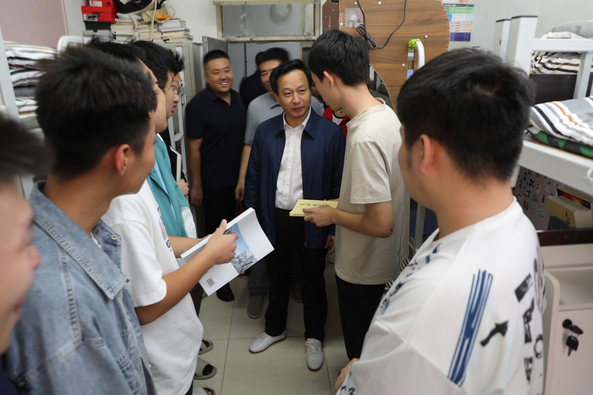 9月10日,正逢中秋佳节,学院党委书记雷承锋、院长何秋生、副院长尤陶江、赤新生、李芳等院领导分两组深入学院四校区学生宿舍,看望慰问中秋节在校的学生,与同学们共同欢度中秋,缓解同学们因疫情原因不能与家人共度佳节的思乡之情,并送上节日问候与诚挚祝福,为同学们带来了一份特殊的节日礼物。