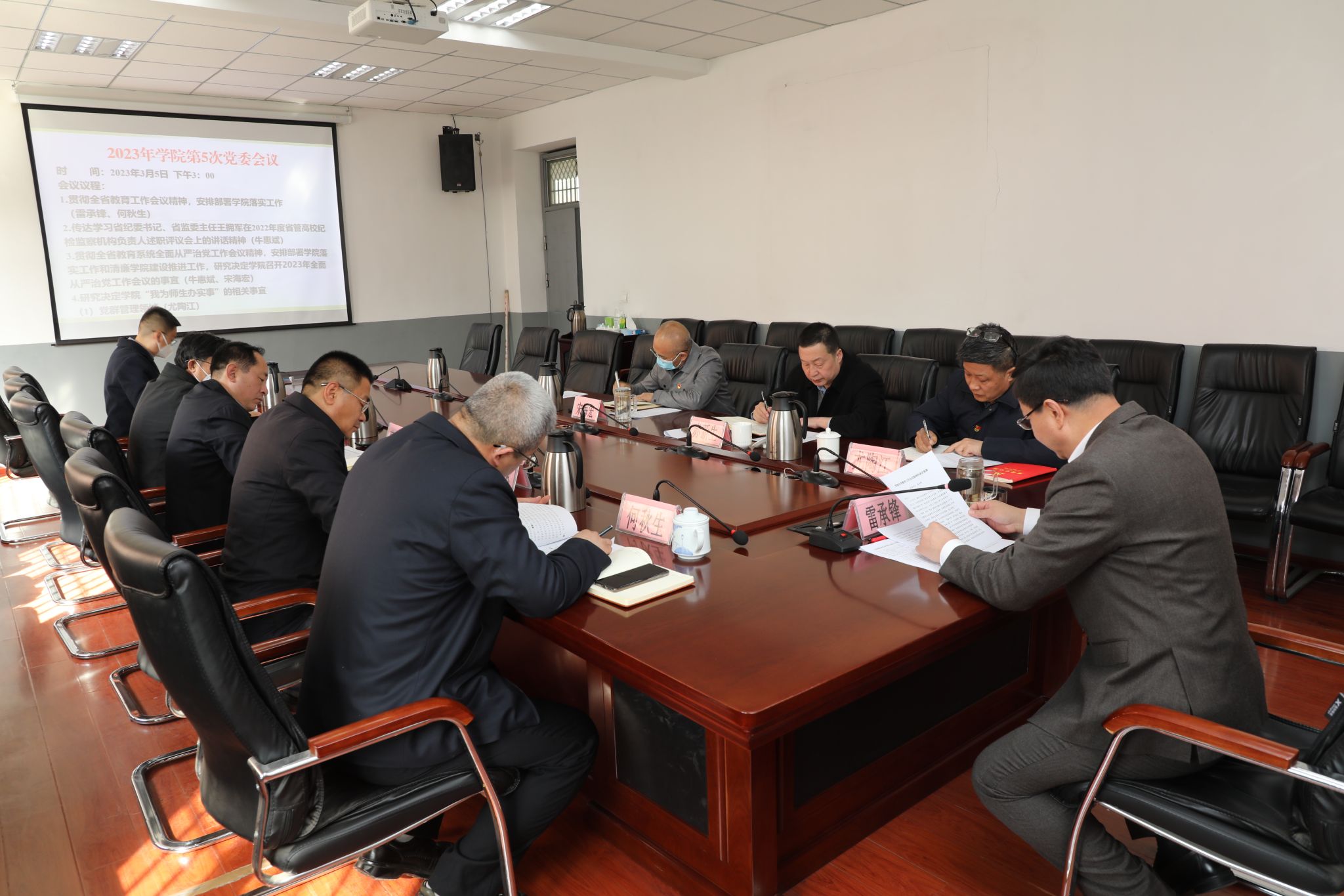 3月5日,学院党委书记雷承锋主持召开2023年第五次党委会议。会议贯彻落实全省教育工作会议精神,安排部署学院工作。全体党委委员参加会议,相关部门负责同志列席会议。