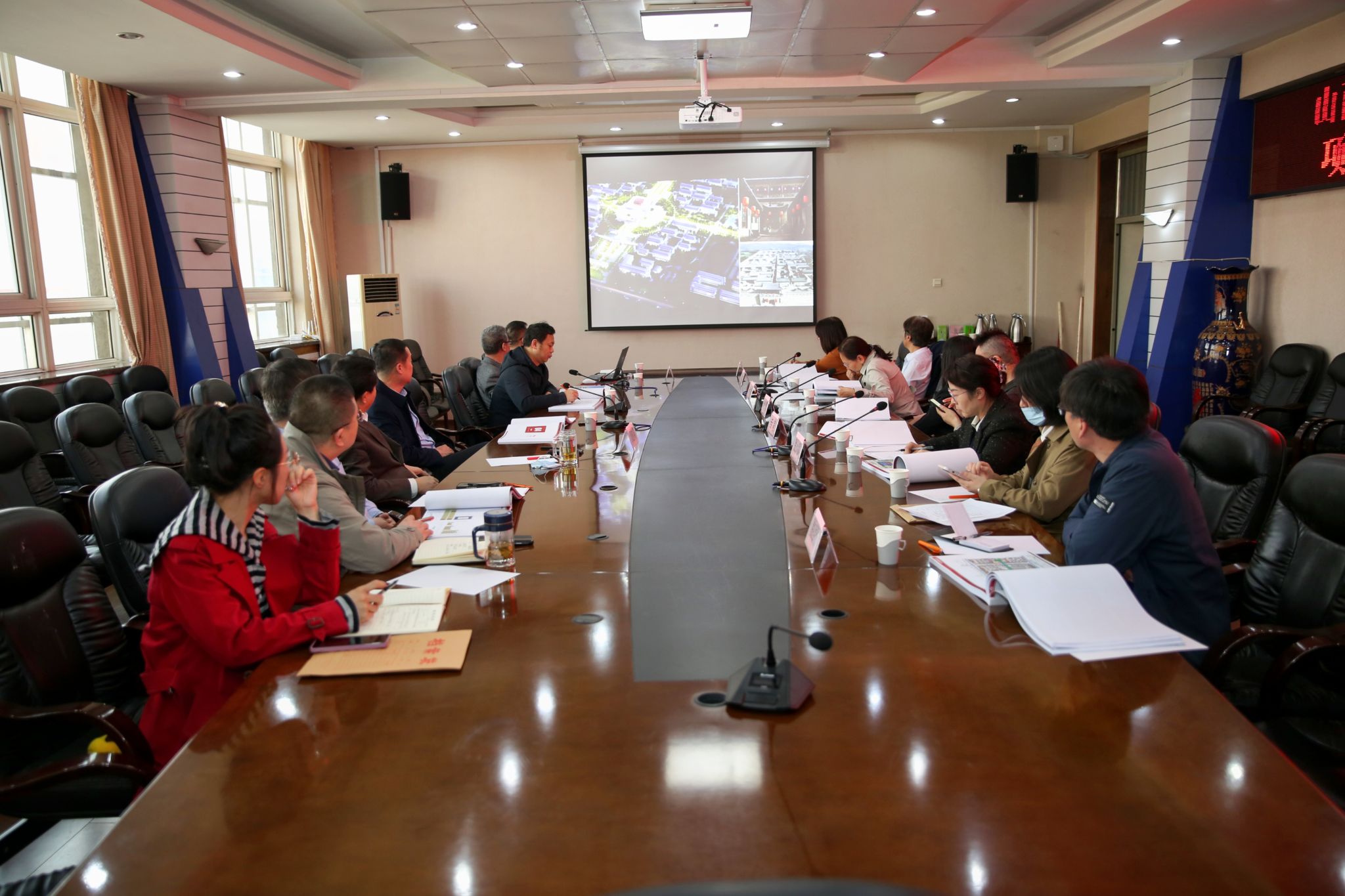 3月29日下午,万象城官网新校区一期工程建设项目规划与建筑设计方案评审会在主楼四楼议室召开。学院党委书记雷承锋、副院长赤新生出席会议。清徐县行政审批局和清徐县自然资源局负责人、评审专家以及学院新校区办公室相关人员参加会议。会议由清徐县行政审批局王庆敏主任主持。