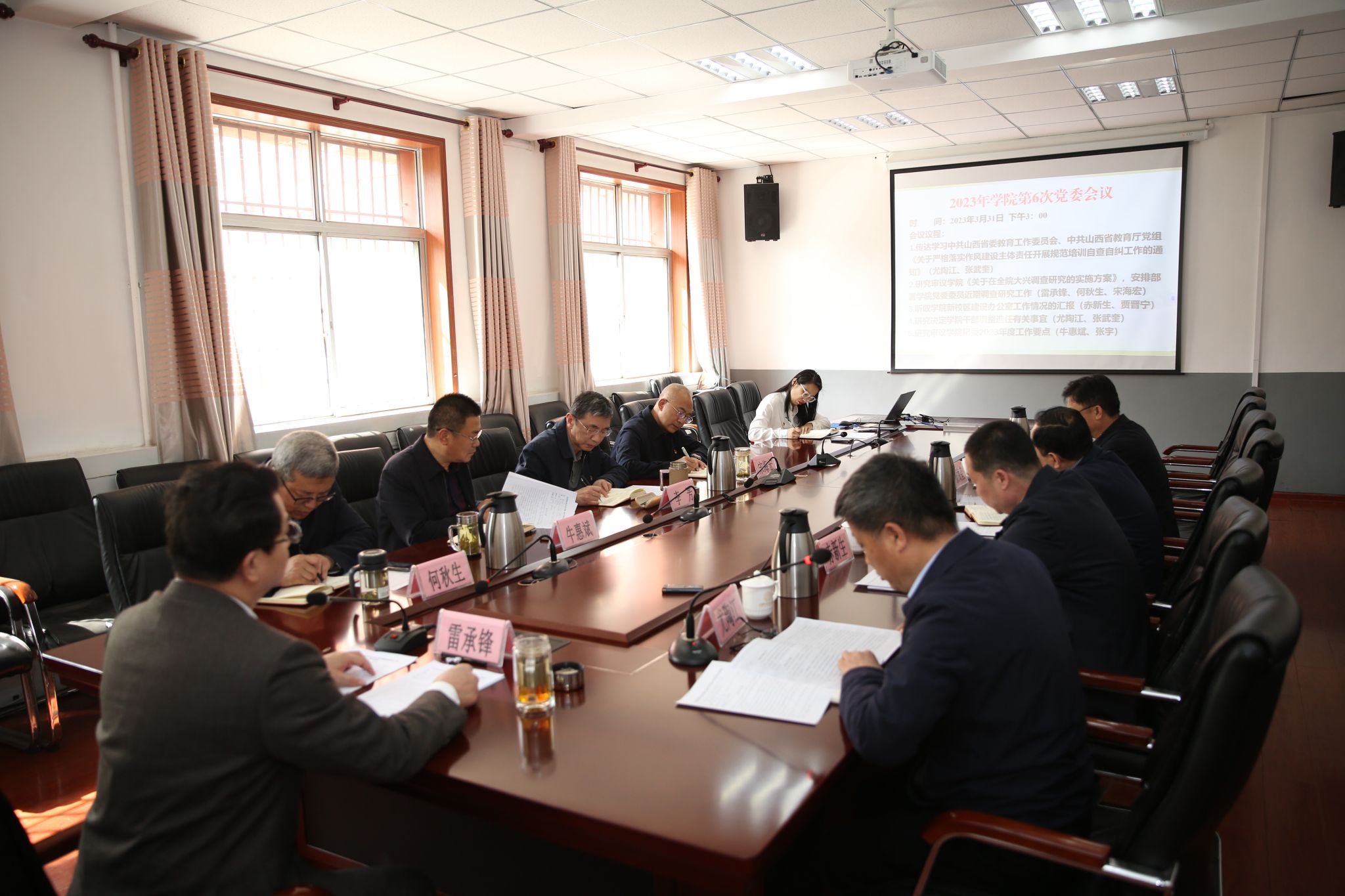 会议传达学习了中共山西省委教育工作委员会、中共山西省教育厅党组《关于严格落实作风建设主体责任开展规范培训自查自纠工作的通知》。会议听取了学院新校区建设办公室工作情况的汇报;研究决定了学院贯彻落实《中共中央关于加强对“一把手”和领导班子监督的意见》的实施办法、调整清廉学院建设工作专班和高层次人才引进的事宜。