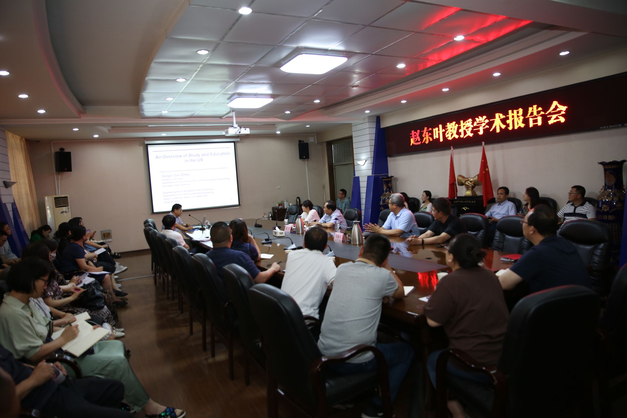 6月30日下午,学院特邀请美国圣地亚哥州立大学赵东叶教授在坞城校区教学楼四层会议室开展学术报告。学院院长何秋生、副院长蔚志坚、教务(科技)部负责人、各系部主任、书记及材料系全体教师等50余人进行现场交流学习。