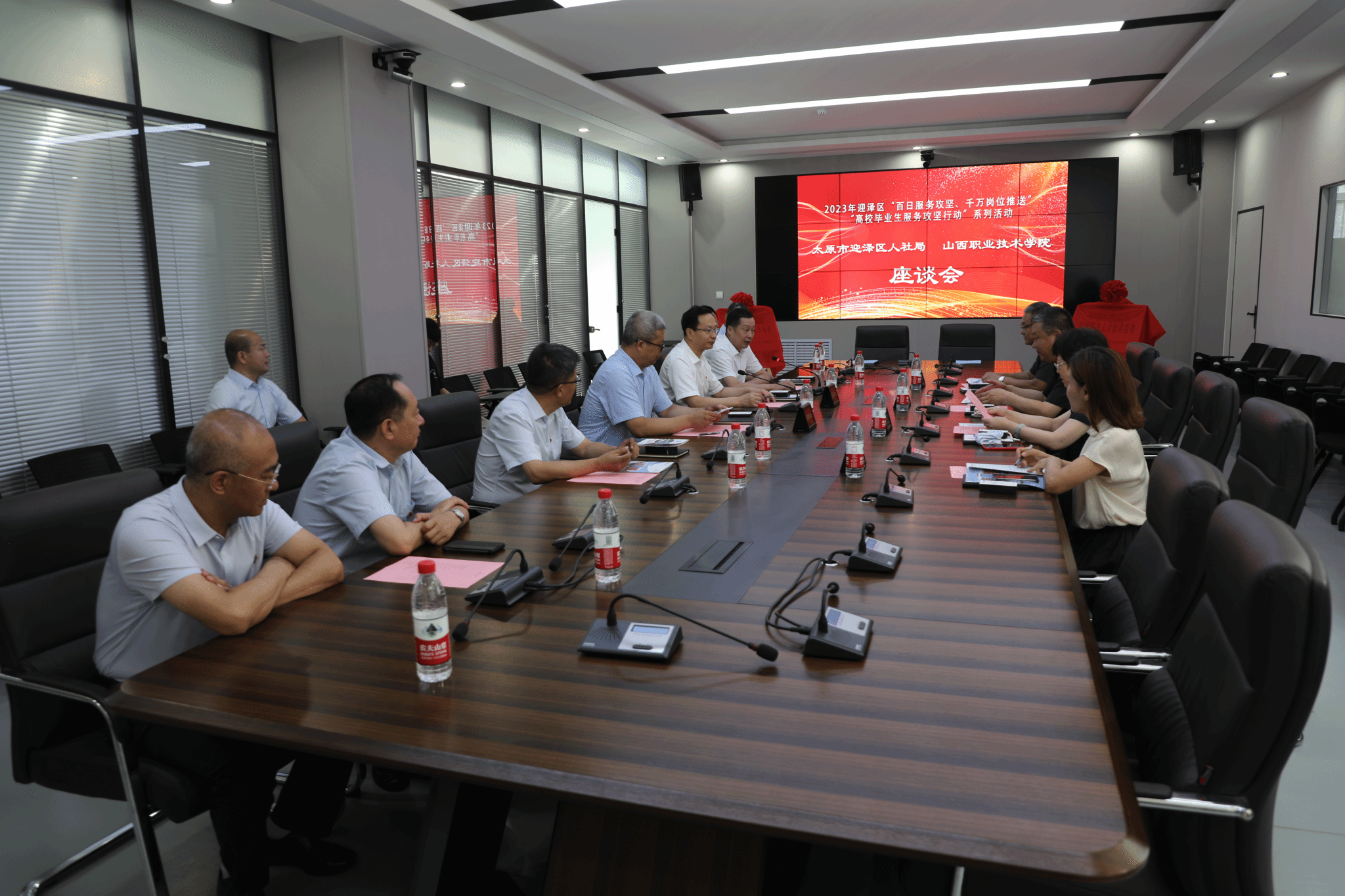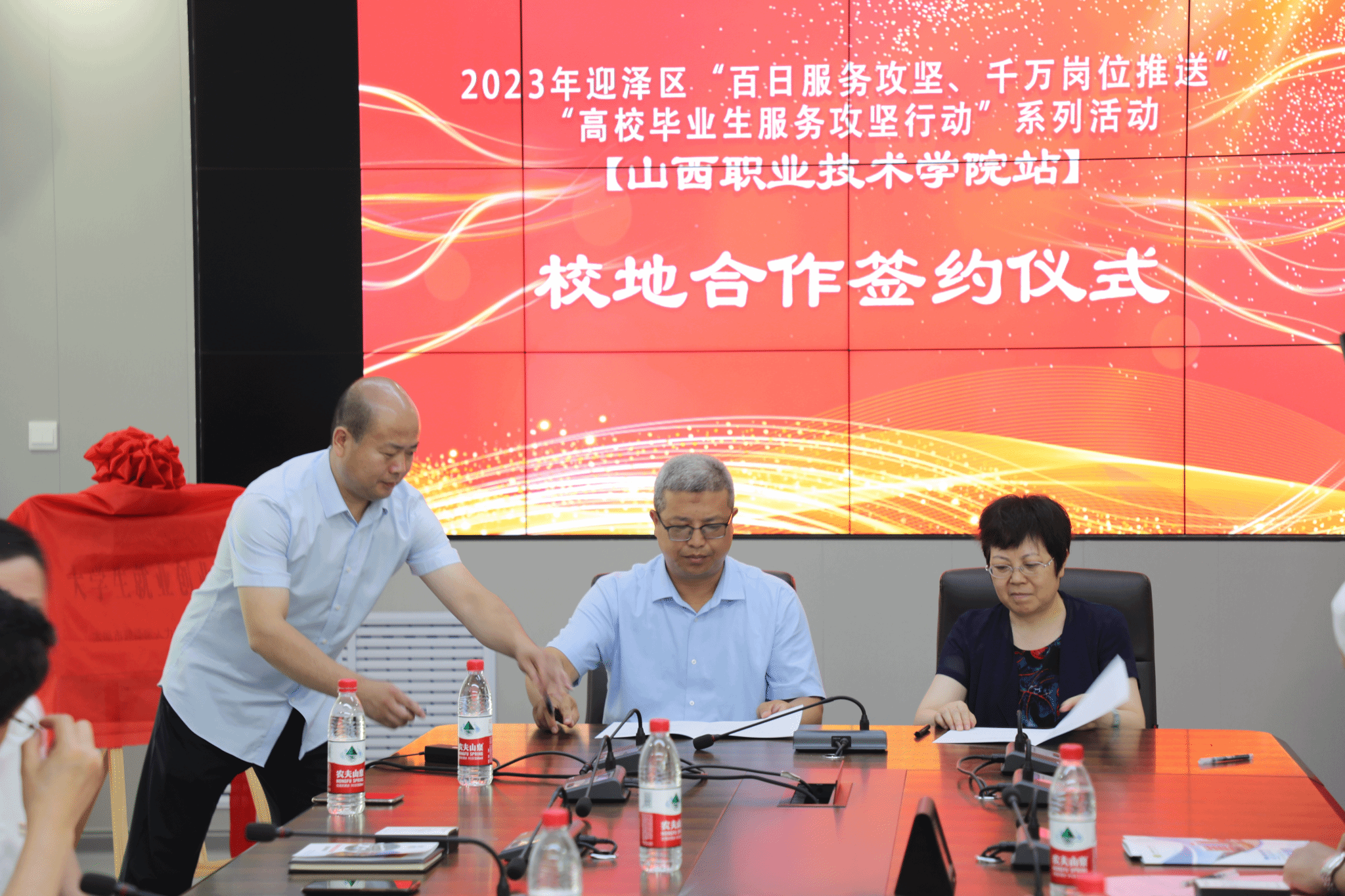 7月15日,上午万象城官网联合太原市迎泽区政府、区人力资源和社会保障局在长风校区成功举办2023届毕业生技能人才招聘会,并与迎泽区政府签订校地合作战略框架协议。学院党委书记雷承锋、院长何秋生、迎泽区政府副区长陈文生,区人社局党组书记局长王晓莉和学院全体院领导以及相关职能部门出席了本次招聘会和座谈会。