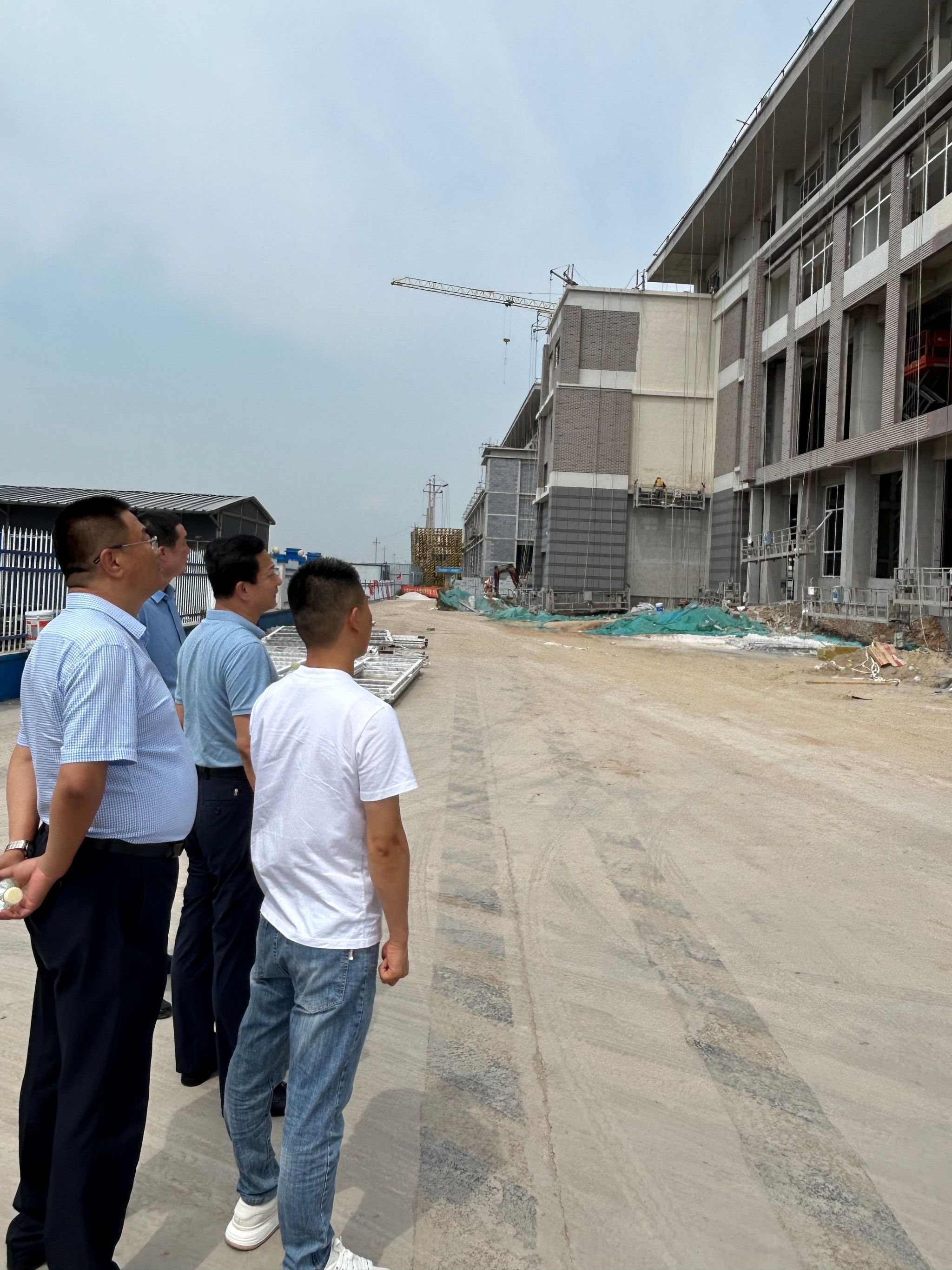 7月27日,学院党委书记雷承锋,党委委员、纪委书记牛惠斌,党委委员、副院长赤新生等一行赴新校区检查产教融合实训楼项目建设进展情况,并安排部署后续工作。