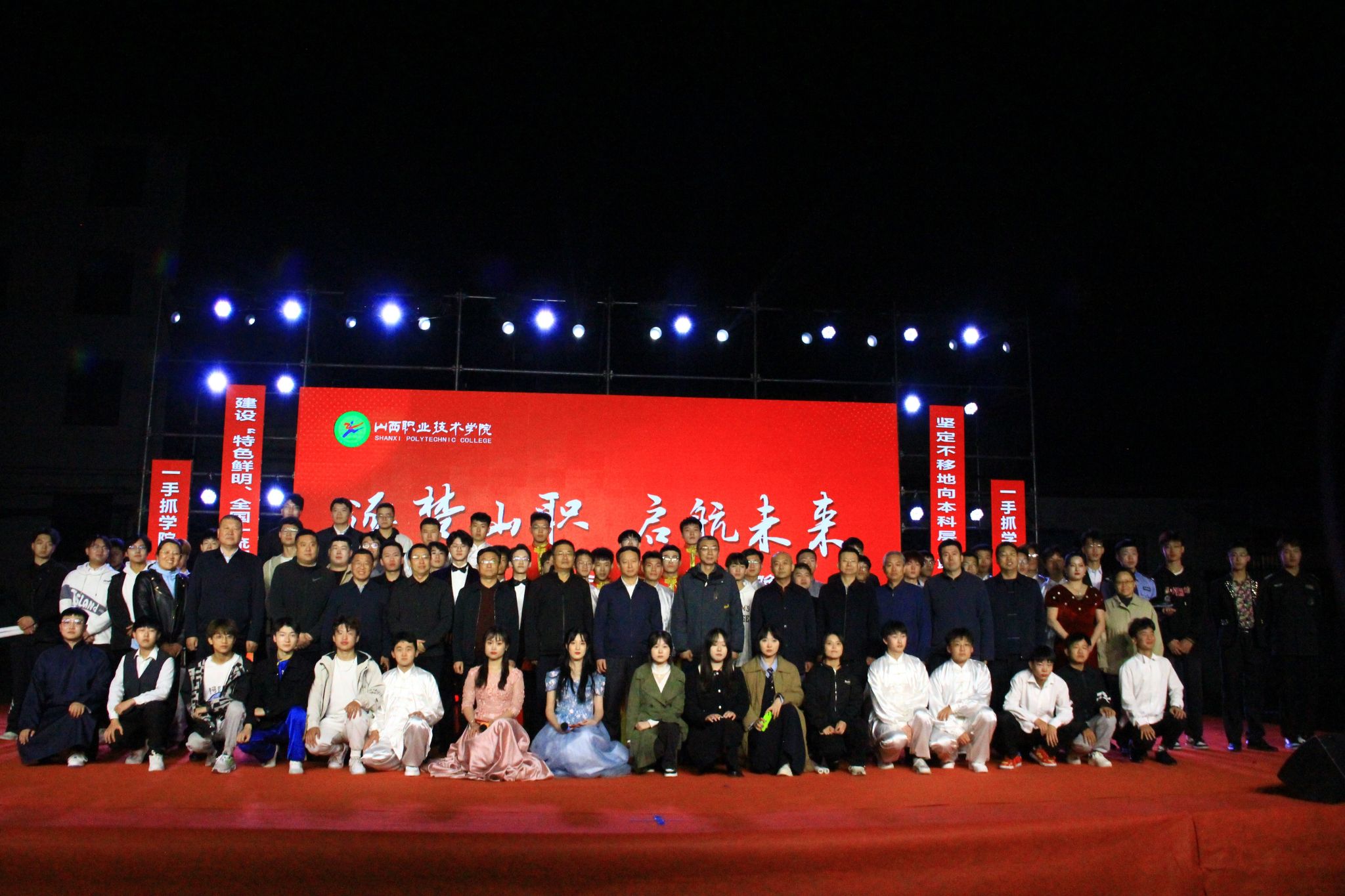金秋时节,新程再启。为展现青春洋溢的校园文化氛围、彰显师生积极向上的精神风貌,10月24日晚,万象城官网榆次校区在篮球场成功举办以“逐梦山职、启航未来”为主题的2023年迎新生文艺晚会,学院党委书记雷承锋、党委委员、纪委书记牛惠斌、党委委员、副院长李芳、党委委员、党政办公室主任、宣传统战部部长宋海宏、党委委员、组织人事部部长张武奎出席活动,学院各部门负责人、榆次校区各系部负责人、各班级辅导员和全体同学共2000余人观看了现场演出。
