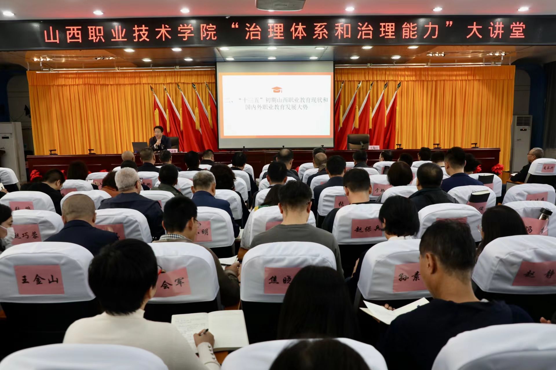 随后,雷承锋以“学院“十三五”初期的基本状况”““十三五”初期山西职业教育现状和国内外职业教育发展大势”为主要内容作第一讲专题报告。报告围绕学院“十三五”初期的基本现状以及“十三五”初期山西职业教育现状和国内外职业教育发展大势等方面,深入阐述了学院历史发展沿革、“十三五”初期所面临的主要发展困境、“十三五”初期所面临的主要发展机遇、“十三五”初期山西职业教育现状、“十三五”初期全国职业教育主要发展形势、“十三五”初期世界职业教育主要发展趋势,帮助全院干部更好地把握学院面临的发展问题以及解决对策,全面掌握全方位推动学院高质量发展的总体布局和工作思路,不断提升干事创业能力水平。