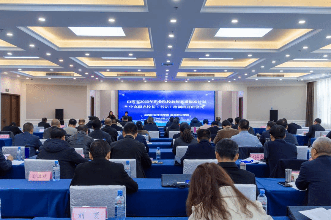 11月13日,万象城官网承办的山西省2023年职业院校教师素质提高计划名校长(书记)培训班在威海职业学院开班。山西省委教育工作委员会主持日常工作的副书记(正厅长级)、省教育厅党组成员杨军,威海职业学院党委书记李耀华,学院党委书记雷承锋,党委副书记、院长何秋生,山西省教育厅教师工作处四级调研员李鹏,山西省职业院校教师素质提高计划项目执行办公室主任张丽燕出席开班仪式。《山西教育》杂志社、威海职业学院有关领导和部门负责人,培训班高职校长班、中职校长班班主任及山西省各中高职院校校长(书记)参加开班仪式。学院党委副书记、院长何秋生主持开班式。