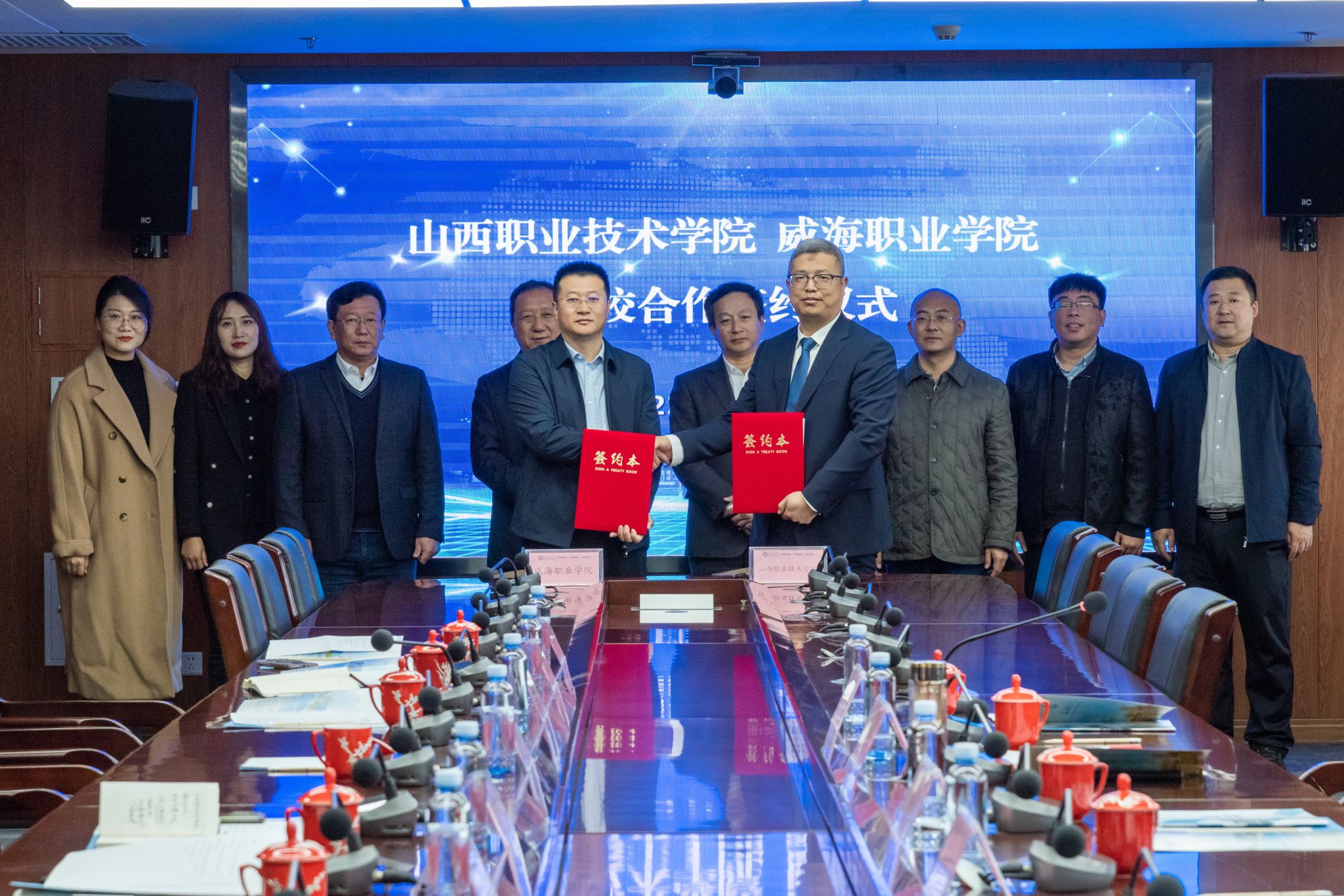 开班仪式后,万象城官网与威海职业学院举行校校共建签约仪式。学院党委委员、宣传统战部部长兼办公室主任宋海宏主持会议。威海职业学院党委书记李耀华,学院党委书记雷承锋,学院党委副书记、院长何秋生,威海职业学院副院长丛迎九,威海职业学院副院长陶崴嵬,学院继续教育与培训部主任关浩以及威海职业学院相关部门人员参加签约仪式。