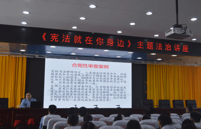 全院专兼职辅导员和上百名大学生参与本次讲座,现场气氛热烈,同学们积极互动。此次讲座不仅让同学们对宪法有了更加清晰的认识,也激发了他们学习法律知识的热情。