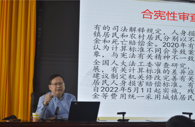 讲座中,郭教授从党的二十大报告关于宪法的基本权利及内容的阐述出发,详细讲解了宪法与我们一生的紧密联系,并着重阐述了推动全面贯彻实施宪法的必要性和紧迫性。他通过生动鲜活的案例,深入浅出地分析了宪法如何在日常生活中发挥作用,使同学们深刻感受到了宪法的威严与力量。郭教授还鼓励同学们要善用法律武器,维护自身权益,捍卫个人尊严。