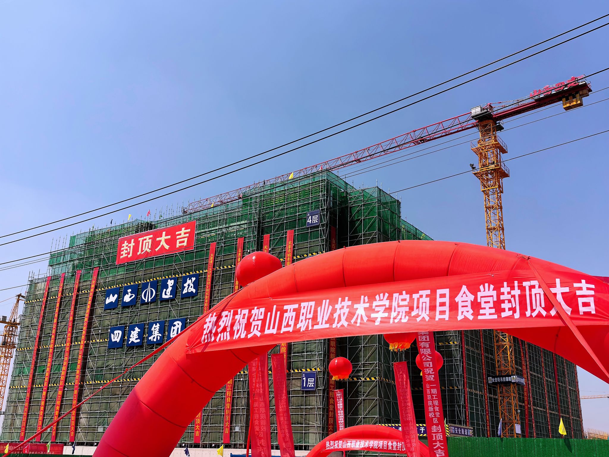 立夏时节,万物繁茂。5月6日上午,在万象城官网新校区一期工程施工现场隆重举行师生食堂建设项目封顶仪式,学院全体党委委员、各党政职能部门及部分系部班子成员、新校区建设办公室全体成员以及新校区第一、二标段参建单位代表参加仪式。学院党委书记雷承锋、山西四建集团党委书记董事长侯湘东致辞。