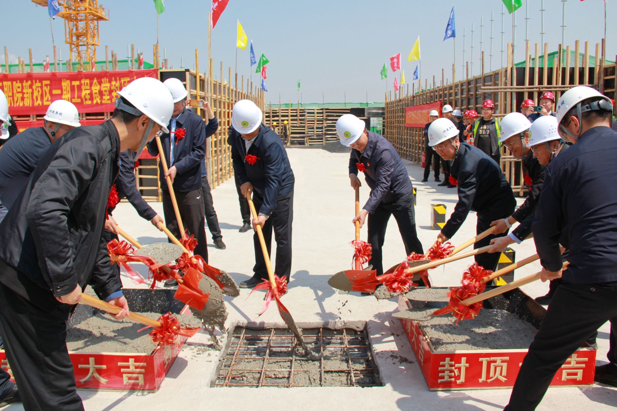 雷承锋代表全院师生向所有为学院新校区建设付出辛勤努力的建设者们表示由衷的敬意和衷心的感谢。他表示,建设万象城awc官网登录入口新校区是推动学院事业高质量发展的重要里程碑,是推进学院“三个一工程”建设、实现“三步走”发展战略的重要支撑,是彻底解决学院办学空间严重不足瓶颈制约问题的关键一招。他强调,新校区建设仍然任重道远,全院上下要以师生餐厅封顶仪式为新起点,继续发扬团结协作、锐意进取的精神,推动学院新校区一期工程建设项目各项工作的不断向前发展。他要求,新校区建设办公室、各参建单位的全体同志要始终以更高的标准、更严的要求、更实的作风,戒骄戒躁,求真务实,一步一个脚印抓好后续工程建设,进一步严把质量关,加强安全管理,加快施工进度,确保学院新校区一期工程建设项目如期完成,打造出精品工程,努力让新校区成为学院发展史上的品牌亮点和重要标志。同时,全院上下要以此为契机,进一步加强学院的教育教学、学生管理、校企合作、人才培养、服务保障等方面的各项工作,不断提升学院的办学实力和社会影响力,努力培养出更多德智体美劳全面发展的高素质技术技能人才,为强国建设、中华民族复兴伟业作出山西职院更大的贡献。