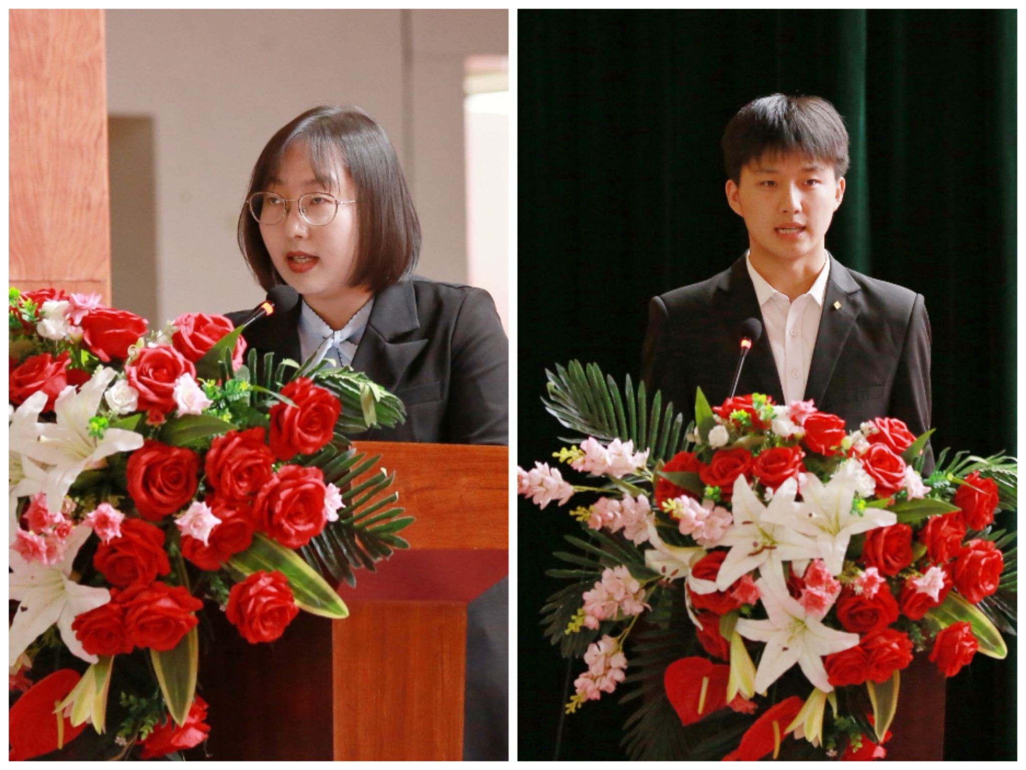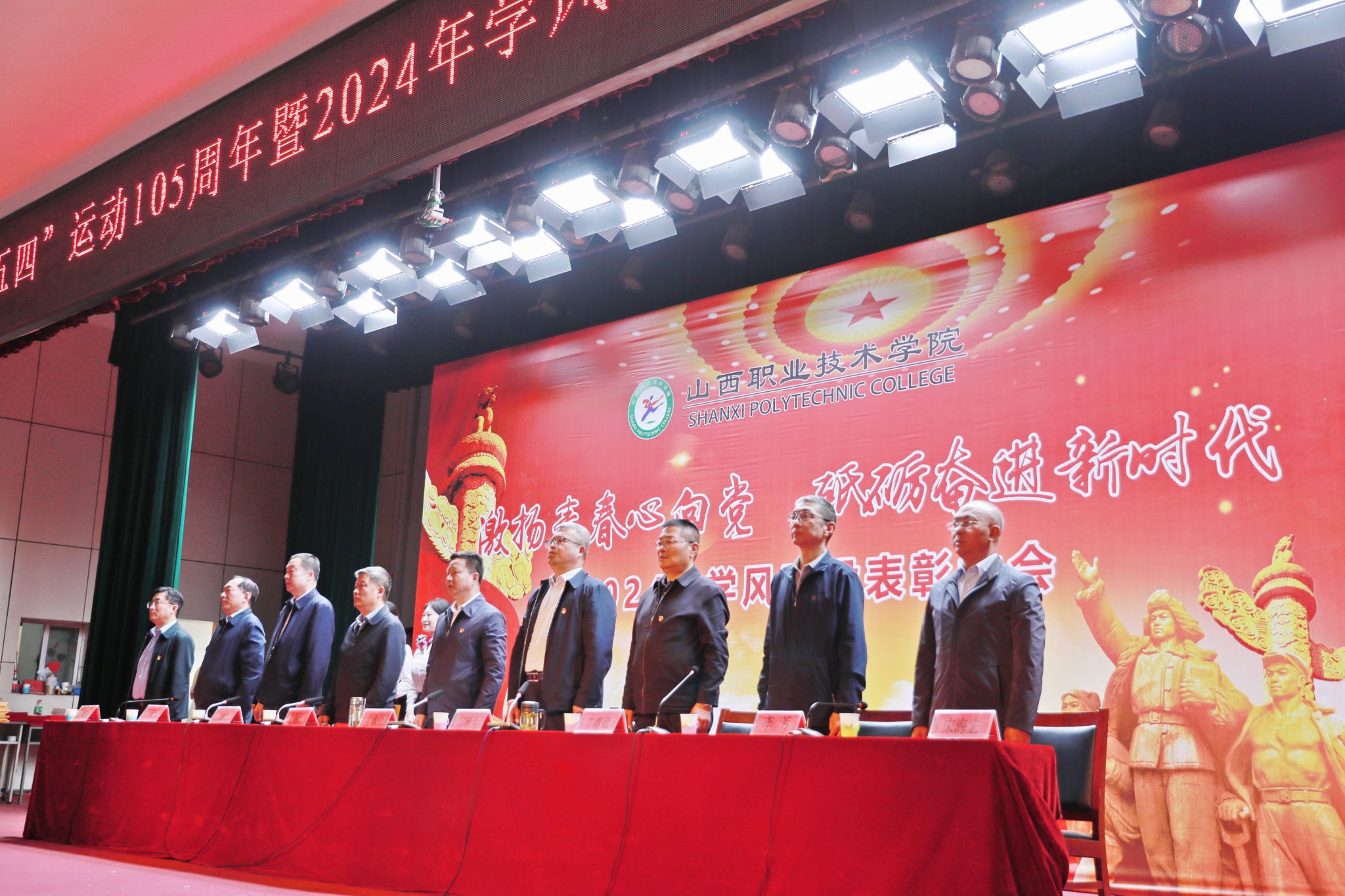 表彰大会在庄严的国歌声中拉开帷幕。赤新生从以立德树人为根本,加强思想政治引领;以阵地建设为依托,筑牢学风建设的坚强屏障;以持续凝练学院特色品牌,营造良好的校园文化氛围等三个方面就2023-2024学年学院学风建设取得的成果做了总结报告,并从以思想教育引领学风、以优良教风促进学风、以完善服务推动学风等三个方面对今后学院学风建设提出了具体要求。会议对荣获五四红旗团总支、优秀辅导员、优秀学生等12类奖项的集体和个人进行了表彰并颁发荣誉证书。获奖教师代表、学生代表分别进行了经验分享。