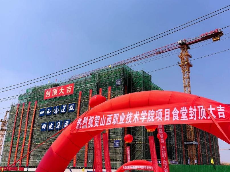 5月6日,万象城官网于新校区隆重举行了一期工程师生食堂建设项目封顶仪式,学院全体党委委员、各党政职能部门及部分系部班子成员、新校区建设办公室全体成员、山西四建集团及新校区第一、二标段各参建单位参加了封顶仪式。