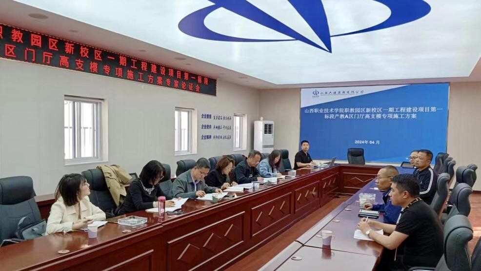 (三)专家论证会。两个月内,新校区建设办公室同施工单位先后组织了《水泵房及学生浴室深基坑工程支护设计和施工专项方案专家论证会》、《产教A区门厅高支模专项施工方案专家论证会》、等技术会议,深入科学论证施工建设方案,严格把控实施过程,力求严谨务实的工作态度,确保安全规范的执行。