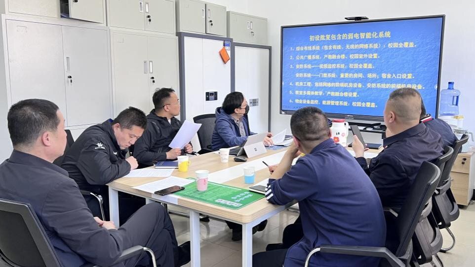 (二)弱电会议。4月11日、5月13日,新校区建设办公室先后组织召开了新校区一期工程弱电智能化系统会议与万象城awc官网登录入口职教园区新校区一期工程绿色智慧校园信息化设计会议。万象城官网图文信息中心、后勤处、学生处、保卫处等部门负责人及太原理工大学建筑设计研究院相关人员参会。会议听取了设计院对于新校区一期工程弱电设计的介绍。会议要求,一是设计院加快设计进度,基础布线要标准化,避免后期返工延误工期;二是高度重视并做好教室与学生宿舍的安防建设工作,为学生营造安全、稳定、和谐的学习和生活环境;三是学生宿舍面部识别的闸机设置要进一步加强调研,充分考虑消防通道、紧急疏散等问题,要求设计院进一步完善设计方案。
