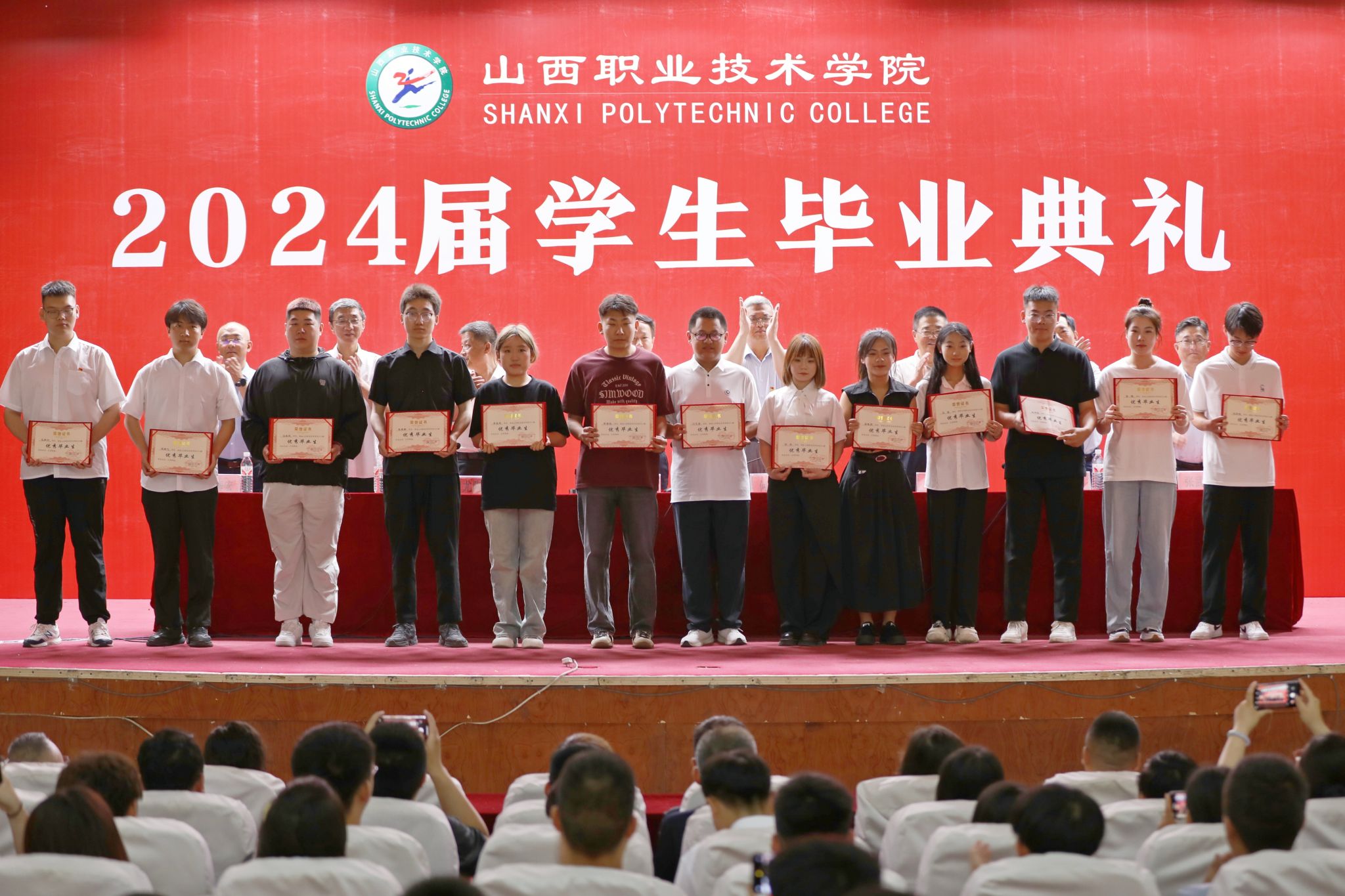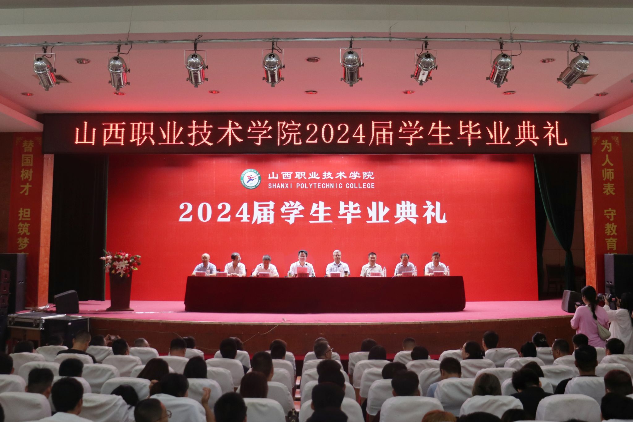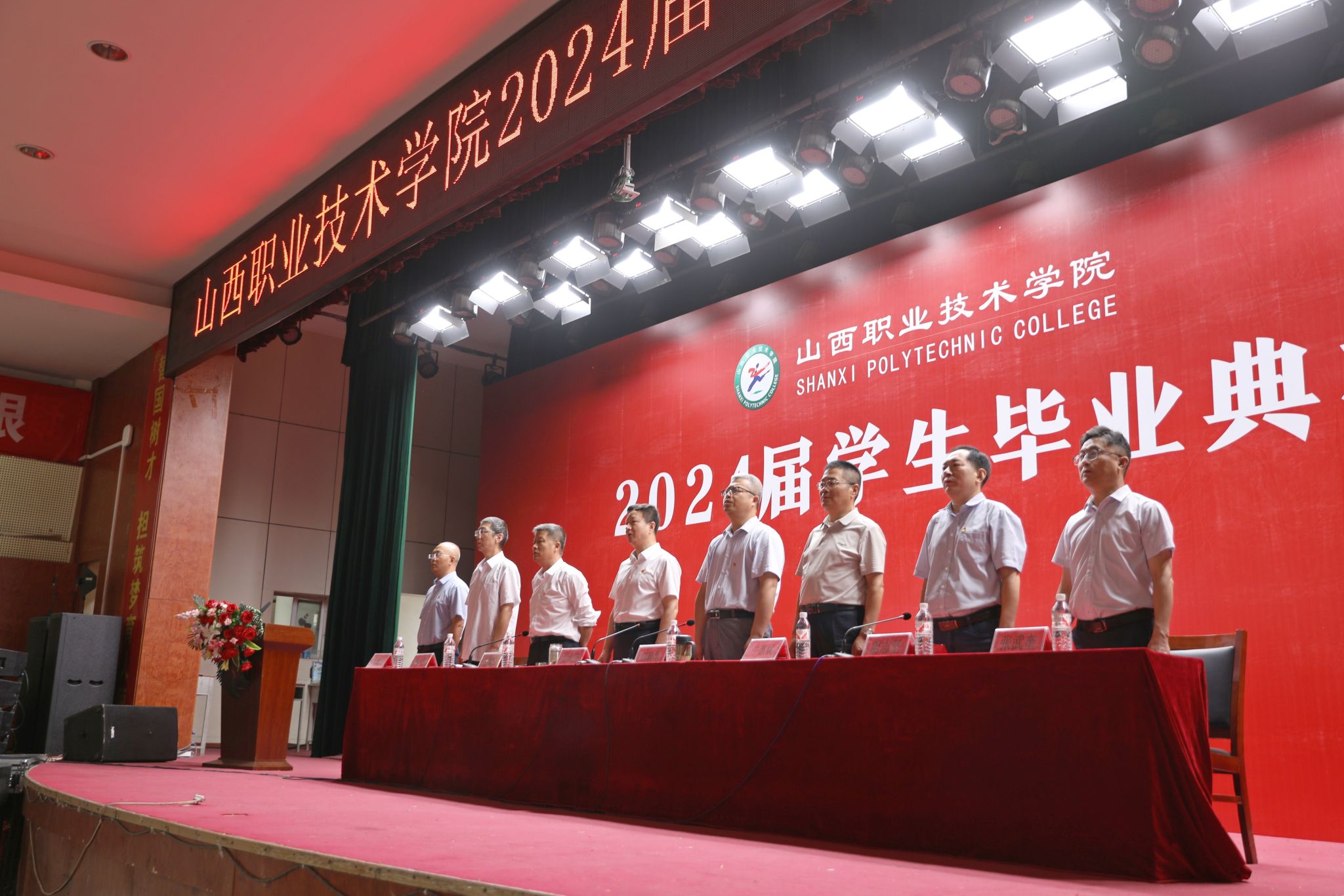 上午九时整,毕业典礼在庄严肃穆的中华人民共和国国歌声中正式拉开帷幕。首先,学院院长何秋生致辞,回顾往昔,何秋生深情地讲述了毕业生们在山西职院的点点滴滴:实训室的汗水、图书馆的静谧、赛场上的荣耀、校园活动中的欢笑……这些场景如同电影般在每个人心中回放,定格成青春最宝贵的记忆;面对未来,何秋生为毕业生们点亮了四盏“心”灯,作为前行的指引:一要秉承信念之心,无论顺境逆境,都要保持热爱与坚韧;二要心怀感恩之心,常怀对母校的感激之情,铭记师恩,不忘初心;三要保持敏锐之心,紧跟时代步伐,洞察行业变化,争做时代的弄潮儿;四要笃行务实之心,脚踏实地,从基层做起,积小胜为大胜,最终实现个人梦想。