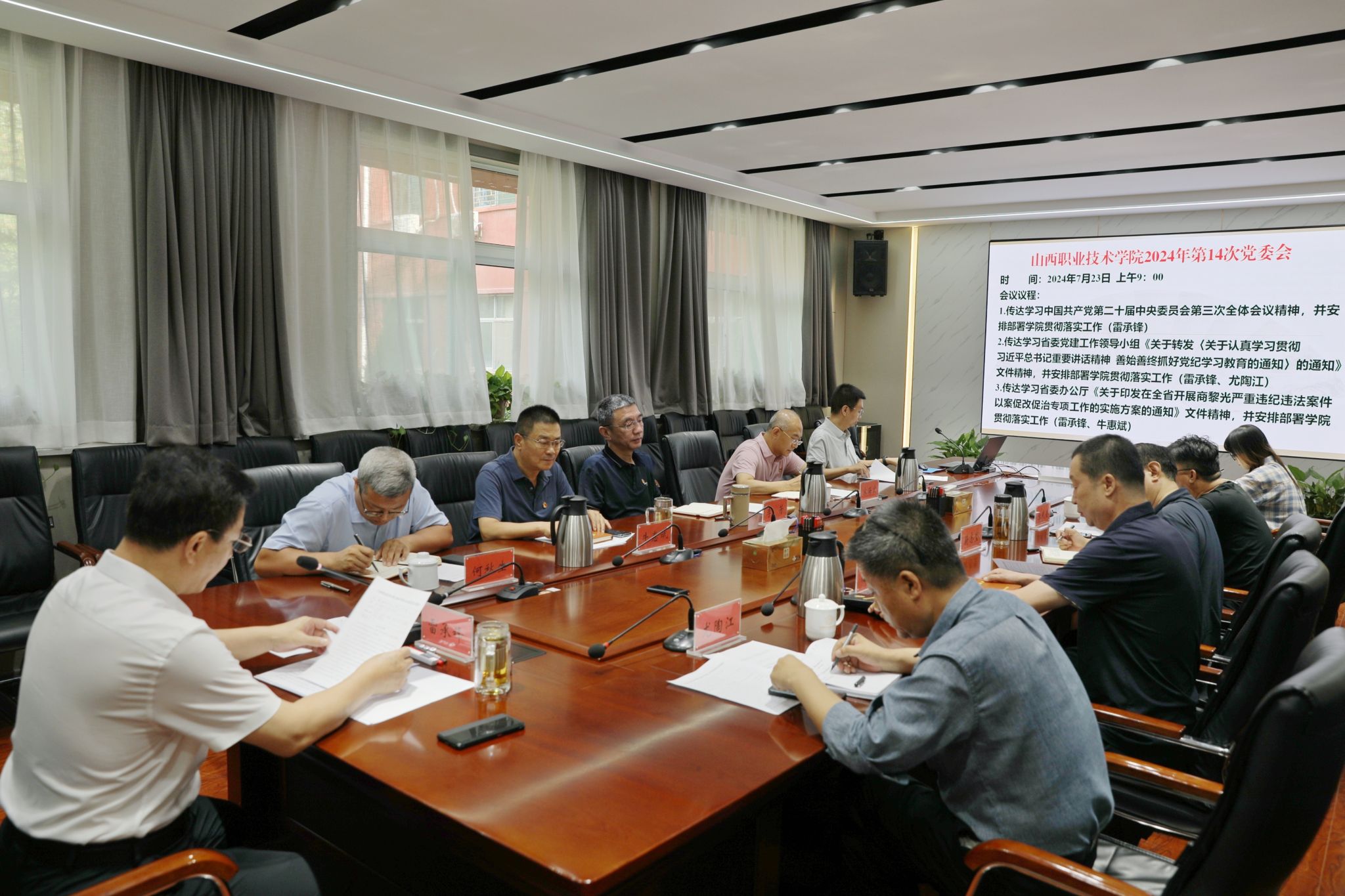 7月23日,学院党委书记雷承锋主持召开2024年第十四次党委会。会议传达学习党的二十届三中全会精神、省委党建工作领导小组《关于转发认真学习贯彻习近平总书记重要讲话精神 善始善终抓好党纪学习教育的通知》文件精神和省委、省教育厅相关文件精神,安排部署学院贯彻落实工作。全体党委委员参加会议,相关部门负责同志列席会议。