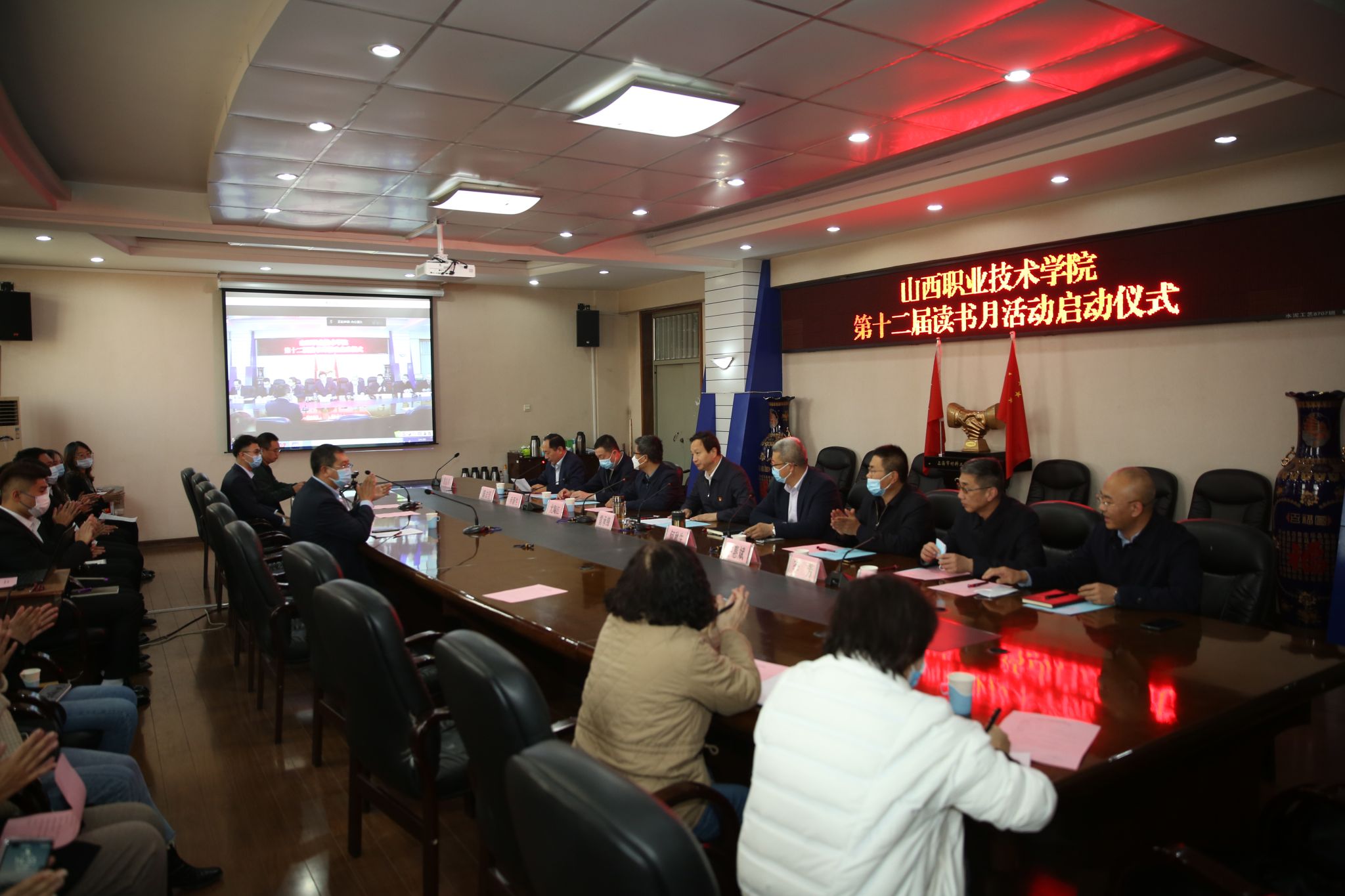 11月1日,万象城官网第12届读书月活动线上启动仪式在坞城校区四楼会议室隆重举行。出席仪式的有学院领导、坞城校区的系部党政负责人、图文信息中心读书月团队、教师代表以及学生代表。院长何秋生同志致开幕词,图文信息中心杨建军主任宣读了本届读书月活动实施方案,教师代表和学生代表发出了读书倡议,启动仪式由副院长蔚志坚同志主持。
