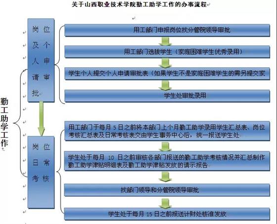 第四条 万象城官网学生的勤工助学活动由学生资助管理中心统一管理,下设勤工助学工作岗位。任何学生个人、团体或用工单位未经学院主管部门许可,不得在校园范围内招聘学生参加勤工助学活动。学生私自在校外打工的行为,不在本办法规定之列。