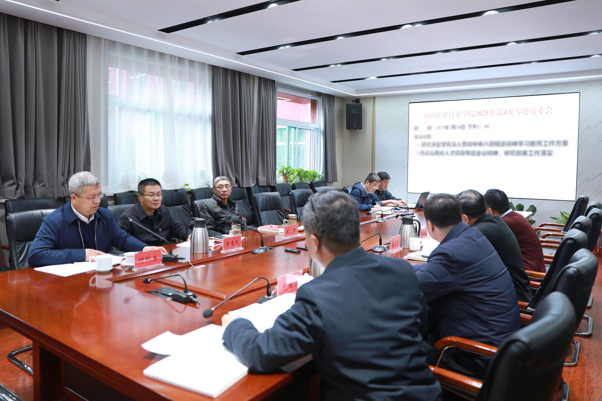 会议传达学习习近平传达中央党的建设工作领导小组会议和中共中央办公厅《关于在全党开展深入贯彻中央八项规定精神学习教育的通知》、省委办公厅《关于在全省开展深入贯彻中央八项规定精神学习教育的实施方案》精神,审议《学院党委深入贯彻中央八项规定精神学习教育的实施方案》。