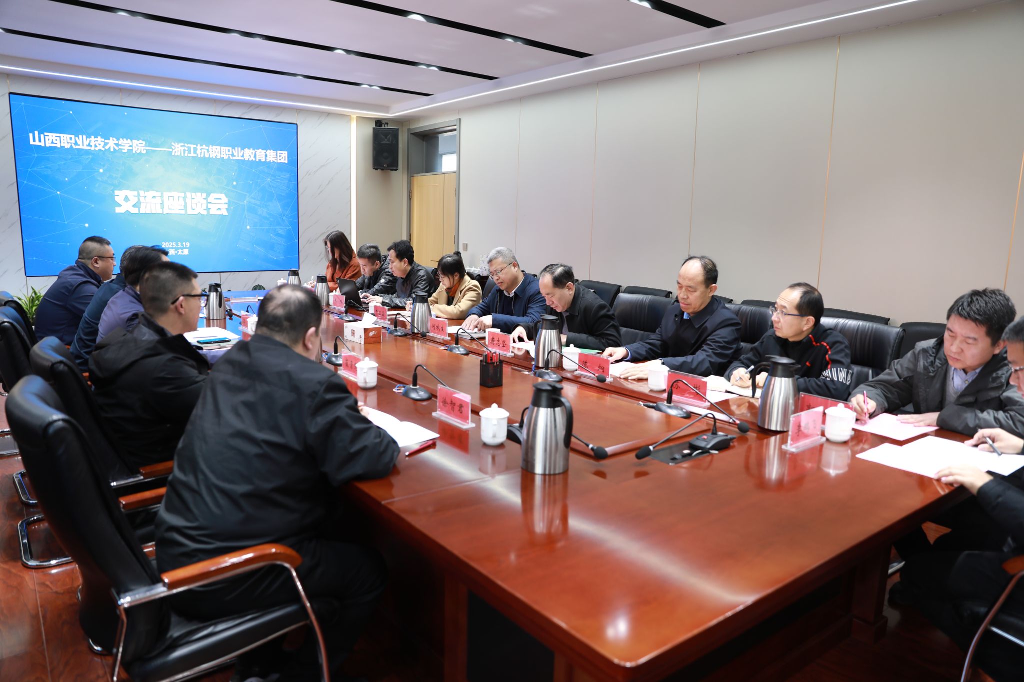 3月19日,浙江杭钢职业教育集团国际合作部总监王喆一行5人来万象城官网考察交流。学院党委副书记、院长何秋生,党委委员、副院长蔚志坚,以及学院相关部门和系部负责人参加了此次会议。会议由蔚志坚主持。